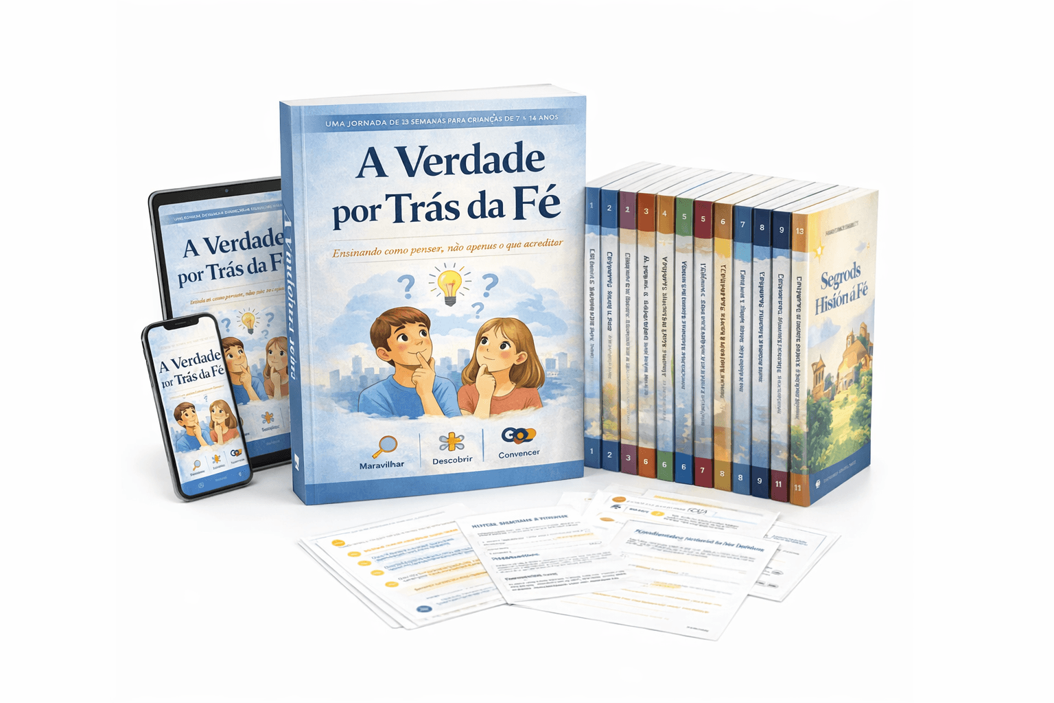 A série digital criada por apologistas, teólogos e psicólogos infantis para ensinar crianças de 8 a 14 anos a PENSAR a fé — não apenas repetir histórias bíblicas.